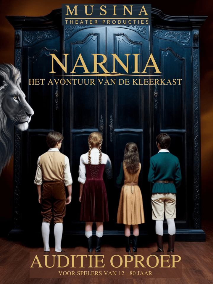 Narnia – het avontuur van de kleerkast is een avontuurlijke en magische musical, geïnspireerd op het beroemde boek van C.S. Lewis. Vier kinderen ontdekken een geheime wereld achter een oude kledingkast en belanden in het betoverde land Narnia. Daar ontmoeten ze de moedige leeuw Aslan en helpen ze in de strijd tegen de kwaadaardige Witte Heks, die het land in een ijzige greep houdt. Een verhaal vol fantasie, moed en hoop – met prachtige zelf geschreven muziek.